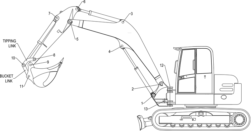 With our quick reference guide identifying which parts you need could not be easier, please select the boom and dipper number from pivot points, making it easy for us to know which parts you are after. Using this system, all we need to know is the make an model of your excavator and the pivot location(s) you need parts for.